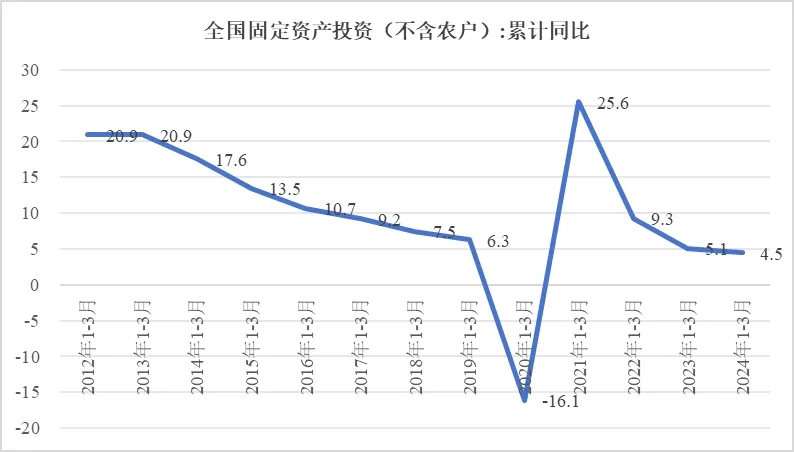 2024年一季度,我国固定资产投资(不含农户����� �������Ƴ������������ �������Ƴ������������ �������Ƴ������������ �������Ƴ������)同比增长4.5%,增速较上年同期下降0.6个百����� �������Ƴ������������ �������Ƴ������������ �������Ƴ������������ �������Ƴ�������分点。建安工程、设备工器具购置分别增长4.����� �������Ƴ������������ �������Ƴ������������ �������Ƴ������������ �������Ƴ�������6%、17.6%,设备工器具购置投资增速明����� �������Ƴ������������ �������Ƴ����������� �������Ƴ������������ �������Ƴ������显高于建安工程投资增速,较2023年全年����� �������Ƴ������������ �������Ƴ������������ �������Ƴ������������ �������Ƴ�������提高11个百分点,说明技术改造升级和设����� �������Ƴ������������ �������Ƴ������������ �������Ƴ������������ �������Ƴ�������备更新市场潜力巨大,体现技术水平的设备����� �������Ƴ������������ �������Ƴ������������ �������Ƴ������������ �������Ƴ�������工器具投入增长加快。
