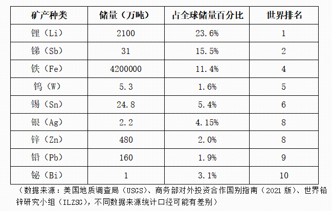 玻利维亚是全球矿藏资源最丰富的国家之一����� �������Ƴ������������ �������Ƴ����������� �������Ƴ������������ �������Ƴ�������,地处安第斯山脉的腹地,由于特殊的地质构造和强����� �������Ƴ������������ �������Ƴ������������ �������Ƴ������������ �������Ƴ�������烈的火山活动,在安第斯山脉的东侧,从拉巴斯����� �������Ƴ������������ �������Ƴ������������ �������Ƴ������������ �������Ƴ�������—奥鲁罗—波托西,一直延伸到阿根廷,形����� �������Ƴ������������ �������Ƴ����������� �������Ƴ����������� �������Ƴ�������成了多个较稳定的锡、钨、锑、银、铅、锌金属成矿����� �������Ƴ����������� �������Ƴ������������ �������Ƴ������������ �������Ƴ�������带。根据商务部国别指南数据,目����� �������Ƴ������������ �������Ƴ������������ �������Ƴ������������ �������Ƴ�������前已探明资源储量中,锂位居����� �������Ƴ������������ �������Ƴ����������� �������Ƴ������������ �������Ƴ�������世界第一,锑储量全球第二,钨储量全����� �������Ƴ������������ �������Ƴ������������ �������Ƴ����������� �������Ƴ�������球第三,铁储量全球第四,锡储量����� �������Ƴ������������ �������Ƴ������������ �������Ƴ������������ �������Ƴ�������全球第六,银和锌储量全球第八,铅储量����� �������Ƴ������������ �������Ƴ������������ �������Ƴ������������ �������Ƴ�������全球第九,铋储量全球第十。金、铜、铟����� �������Ƴ������������ �������Ƴ������������ �������Ƴ������������ �������Ƴ�������等其他金属矿产资源蕴藏也较为丰富。