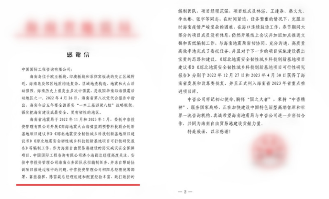 海南省地震局致信感谢中咨公司����� �������Ƴ����� �������Ƴ������������ �������Ƴ������������ �������Ƴ������������ �������Ƴ�������������提供高质量咨询服务