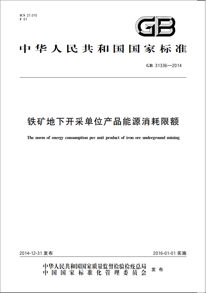 铁矿地下开采单位产品能源消耗限额